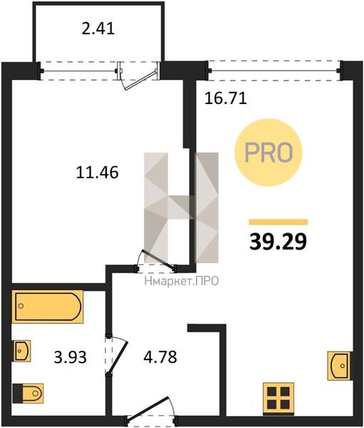 | Общая площадь: | 39.29 м2 |