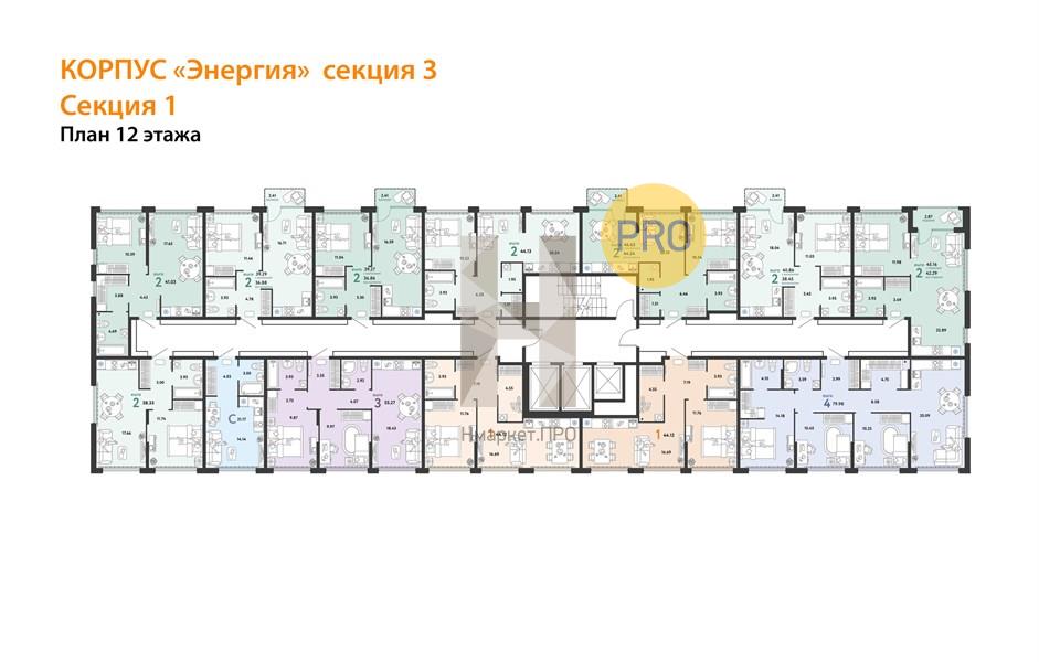 Квартира: 1 к 44,12 кв.м., 12 этаж в комплексе Страна.Энтузиастов, 1 очередь, корп." Энергия " секция 3, сдача: 4кв. , этажей: 13, адрес Екатеринбург г., Шефская ул., , Застройщик: Страна Девелопмент.