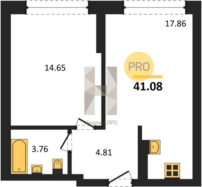 Квартира: 1 к 41,08 кв.м., 19 этаж в комплексе Премиум Кварталы Маяковка, 1 очередь, корп.1, сдача: 1кв. , этажей: 25, адрес Екатеринбург г., Сибирский тракт, д. 16, Застройщик: Деловой квартал.