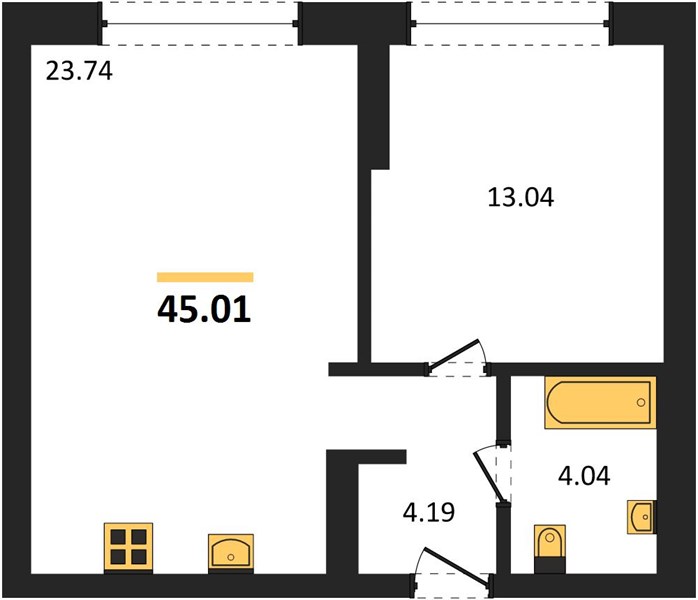 Квартира: 1 к 45,01 кв.м., 24 этаж в комплексе Премиум Кварталы Маяковка, 1 очередь, корп.1, сдача: 1кв. , этажей: 25, адрес Екатеринбург г., Сибирский тракт, д. 16, Застройщик: Деловой квартал.