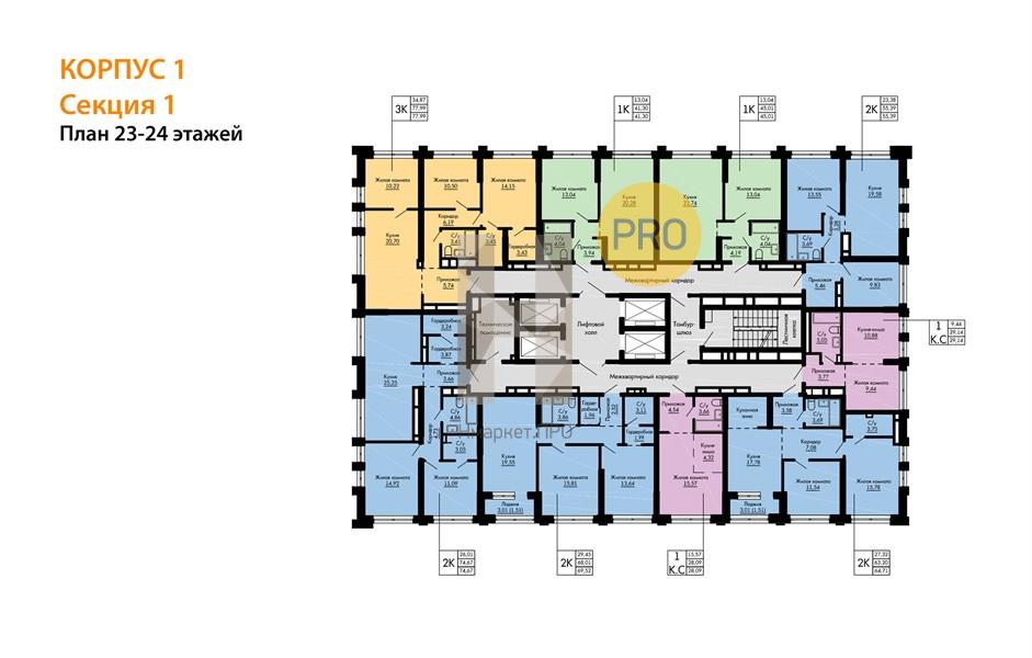 | Площадь кухни: | 23.74 м2 |
