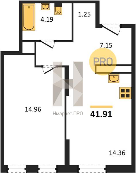 Квартира: 1 к 41,91 кв.м., 32 этаж в комплексе Сибирский сад, 1 очередь, корп.Медный квартал, сдача: 2кв. , этажей: 32, адрес Екатеринбург г., Сибирский тракт, д. 24д, Застройщик: Страна Девелопмент.