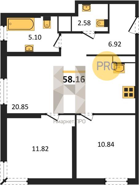 | Общая площадь: | 58.16 м2 |