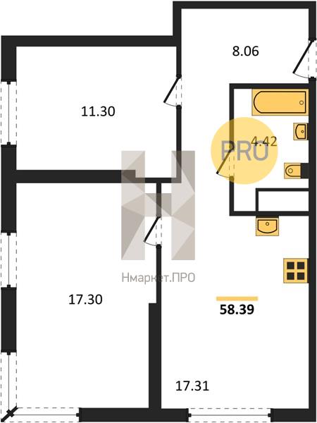 Квартира: 2 к 58,39 кв.м., 7 этаж в комплексе Сибирский сад, 1 очередь, корп.Медный квартал, сдача: 2кв. , этажей: 32, адрес Екатеринбург г., Сибирский тракт, д. 24д, Застройщик: Страна Девелопмент.