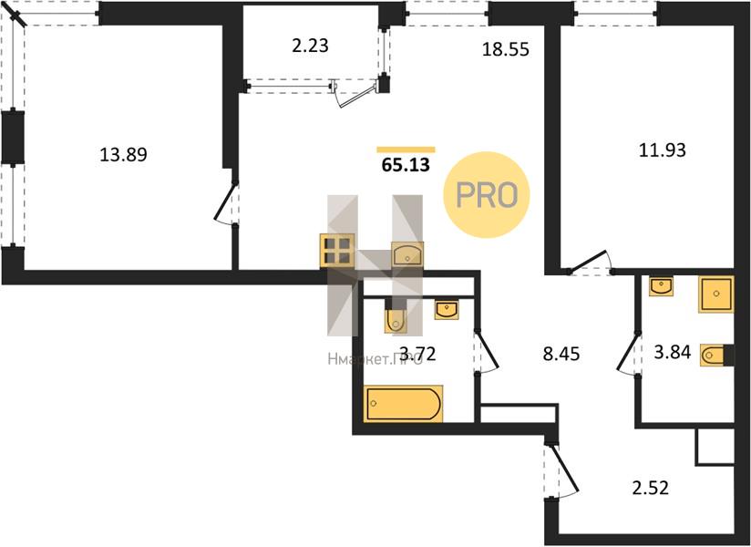| Общая площадь: | 65.13 м2 |