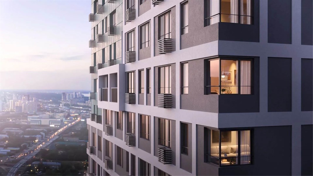 Архитектурной концепцией проекта стало взаимодействие города и природы. Именно поэтому фасад проекта выполнен в натуральных цветах и отделан декоративными панелями, текстурированными под металл, на нижних и верхних этажах. Пластику фасада создают подсветка, французские балконы и заглубления в верхних этажах. У квартир с французскими балконами в проекте предусмотрены панорамные окна, что позволит с верхних этажей наслаждаться видами на зеленое полотно лесопарка или видом на город.