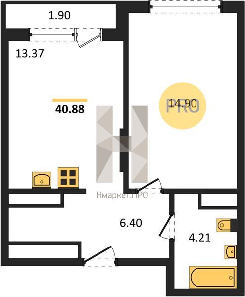 Квартира: 1 к 40,81 кв.м., 14 этаж в комплексе Сибирский сад, 2 очередь, корп.Лесной квартал, сдача: 4кв. , этажей: 32, адрес Екатеринбург г., Сибирский тракт, д. 24А, Застройщик: Страна Девелопмент.