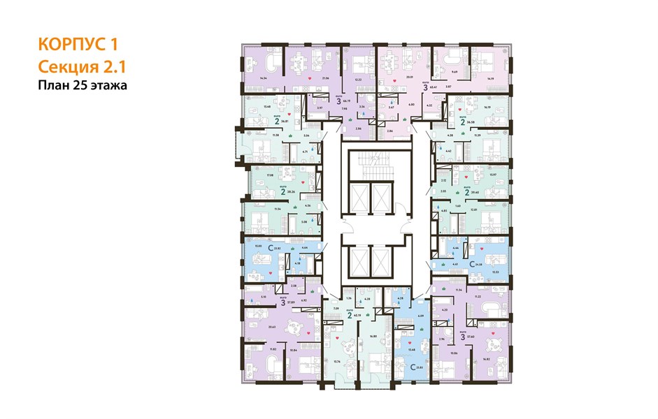 Квартира: 2 к 65,41 кв.м., 25 этаж в комплексе Сибирский сад, 1 очередь, корп.Медный квартал, сдача: 2кв. , этажей: 32, адрес Екатеринбург г., Сибирский тракт, д. 24д, Застройщик: Страна Девелопмент.