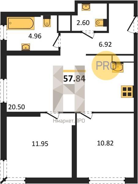 Квартира: 2 к 57,84 кв.м., 5 этаж в комплексе Сибирский сад, 1 очередь, корп.Медный квартал, сдача: 2кв. , этажей: 32, адрес Екатеринбург г., Сибирский тракт, д. 24д, Застройщик: Страна Девелопмент.