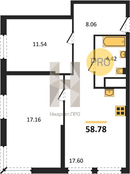 Квартира: 2 к 58,78 кв.м., 14 этаж в комплексе Сибирский сад, 1 очередь, корп.Медный квартал, сдача: 2кв. , этажей: 32, адрес Екатеринбург г., Сибирский тракт, д. 24д, Застройщик: Страна Девелопмент.