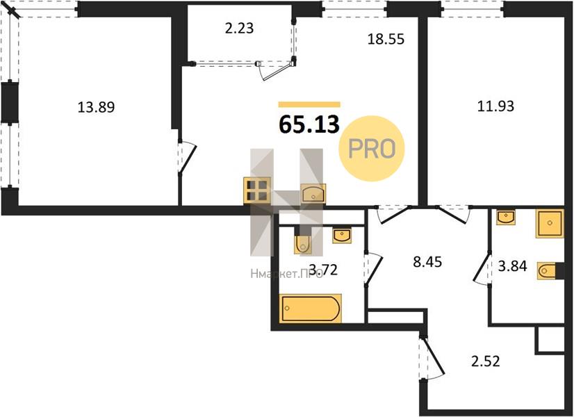 | Общая площадь: | 65.13 м2 |