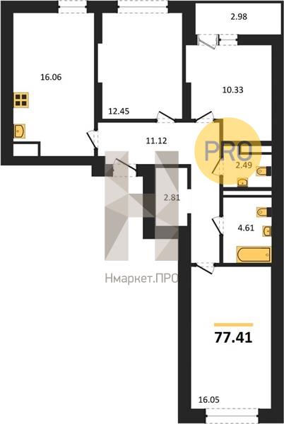 Квартира: 3 к 77,41 кв.м., 12 этаж в комплексе Абрикос, 3 очередь, корп.1 (1.1 - 1.4), сдача: 4кв. , этажей: 17, адрес Екатеринбург г., Софьи Перовской ул., д. 106А, Застройщик: Стройтэк.