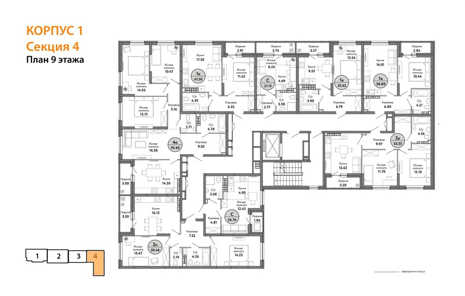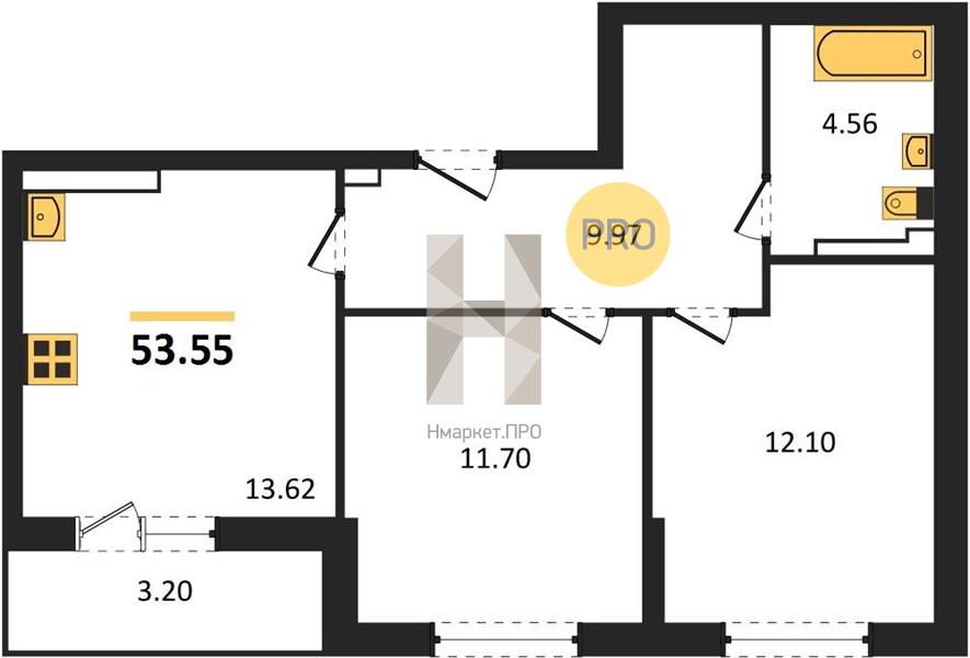 Квартира: 2 к 53,55 кв.м., 9 этаж в комплексе Абрикос, 3 очередь, корп.1 (1.1 - 1.4), сдача: 4кв. , этажей: 17, адрес Екатеринбург г., Софьи Перовской ул., д. 106А, Застройщик: Стройтэк.