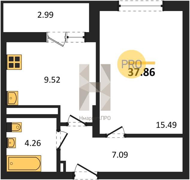 Квартира: 1 к 37,86 кв.м., 13 этаж в комплексе Абрикос, 2 очередь, корп.1 (1.5 - 1.6), сдача: 1кв. , этажей: 17, адрес Екатеринбург г., Софьи Перовской ул., д. 106а, Застройщик: Стройтэк.