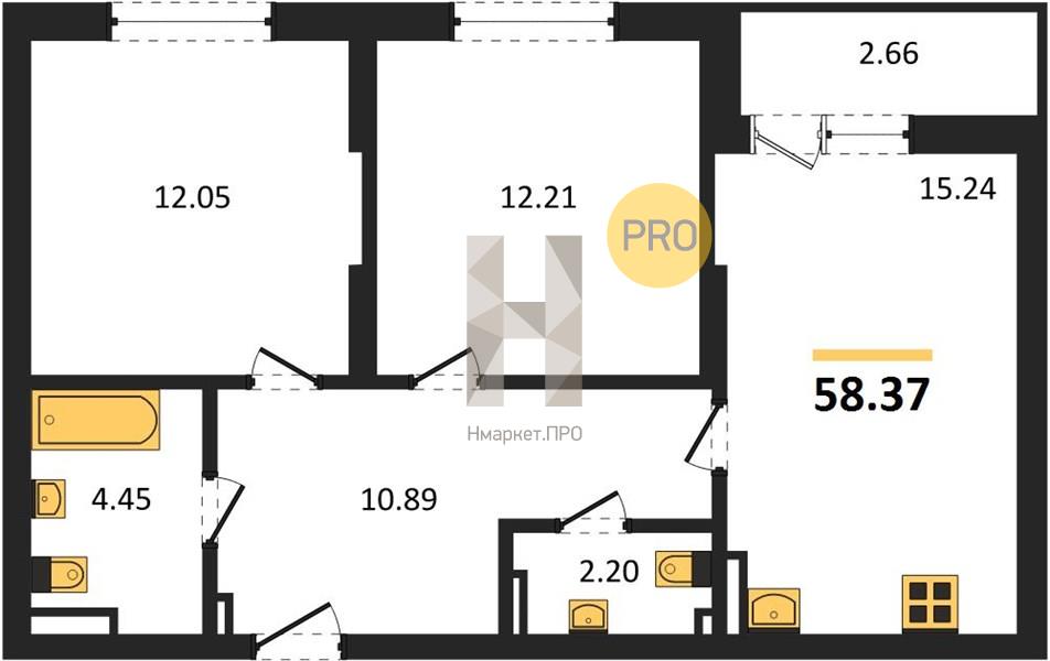 | Общая площадь: | 58.37 м2 |