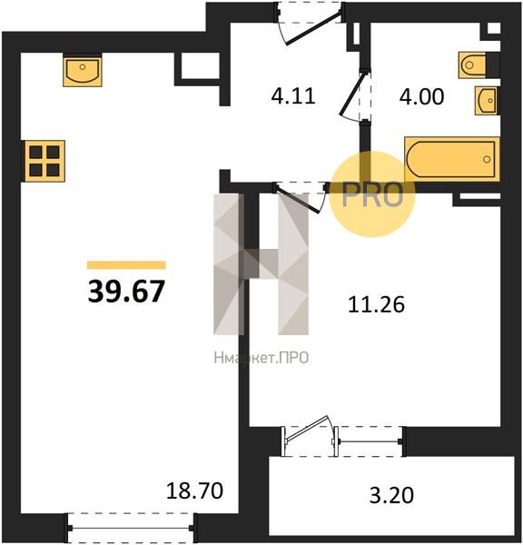 Квартира: 1 к 39,67 кв.м., 7 этаж в комплексе Абрикос, 2 очередь, корп.1 (1.5 - 1.6), сдача: 1кв. , этажей: 17, адрес Екатеринбург г., Софьи Перовской ул., д. 106а, Застройщик: Стройтэк.