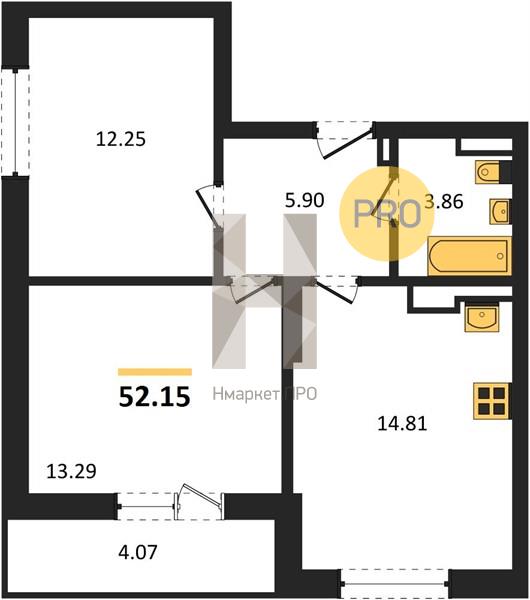 Квартира: 2 к 52,15 кв.м., 9 этаж в комплексе Абрикос, 2 очередь, корп.1 (1.5 - 1.6), сдача: 1кв. , этажей: 17, адрес Екатеринбург г., Софьи Перовской ул., д. 106а, Застройщик: Стройтэк.