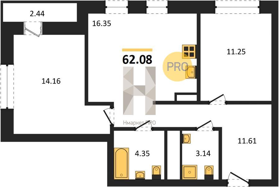 Квартира: 2 к 62,08 кв.м., 15 этаж в комплексе Теплые кварталы, 5 очередь, корп.1, сдача: 3кв. , этажей: 26, адрес Екатеринбург г., Студенческая ул., , Застройщик: Призвание.