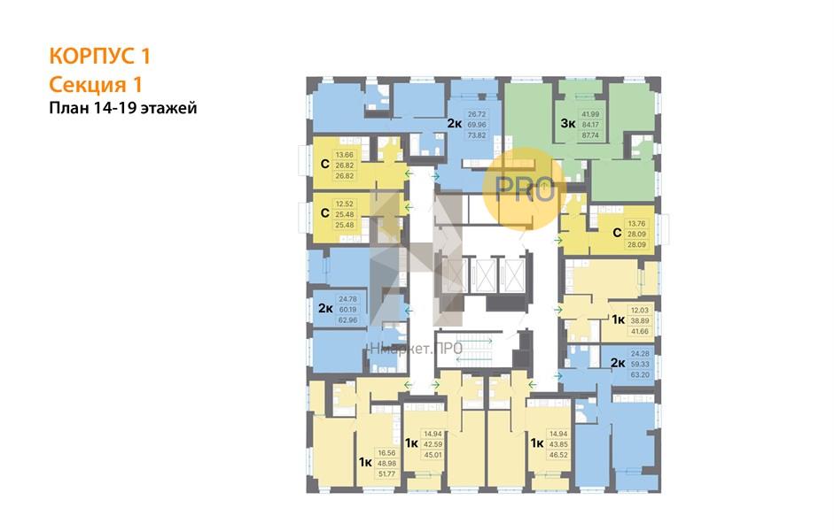 Квартира: 1 к 45,01 кв.м., 18 этаж в комплексе Наука и искусство, 1 очередь, корп.1, сдача: 3кв. , этажей: 24, адрес Екатеринбург г., Студенческая ул., , Застройщик: АтомСтройКомплекс.