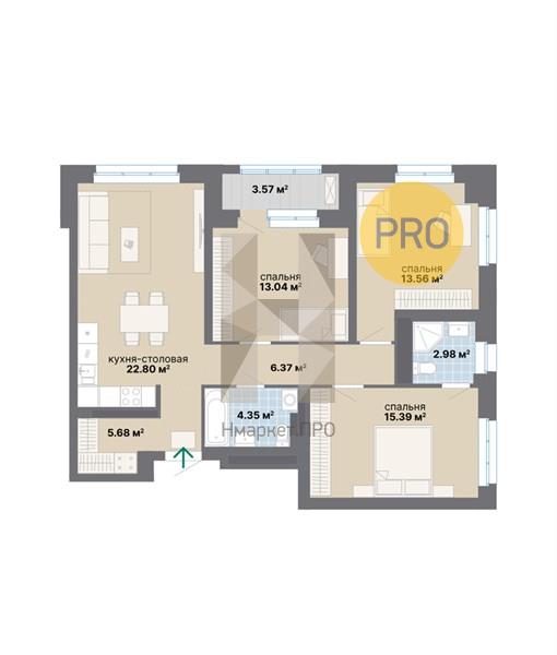 Квартира: 3 к 87,74 кв.м., 18 этаж в комплексе Наука и искусство, 1 очередь, корп.1, сдача: 3кв. , этажей: 24, адрес Екатеринбург г., Студенческая ул., , Застройщик: АтомСтройКомплекс.