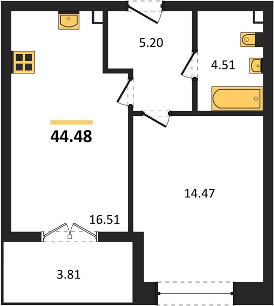 | Общая площадь: | 44.48 м2 |