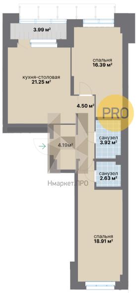 | Площадь кухни: | 21.25 м2 |