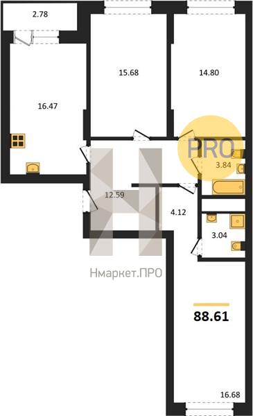 Квартира: 3 к 88,61 кв.м., 14 этаж в комплексе Теплые кварталы, 5 очередь, корп.1, сдача: 3кв. , этажей: 26, адрес Екатеринбург г., Студенческая ул., , Застройщик: Призвание.