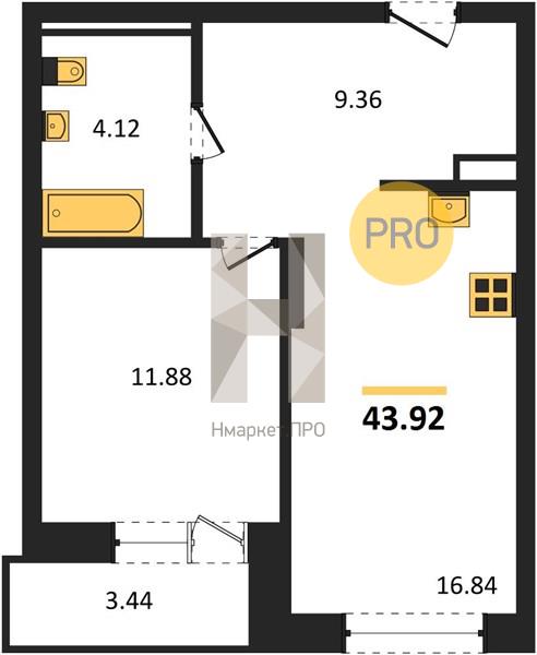 Квартира: 1 к 43,92 кв.м., 23 этаж в комплексе Теплые кварталы, 5 очередь, корп.1, сдача: 3кв. , этажей: 26, адрес Екатеринбург г., Студенческая ул., , Застройщик: Призвание.