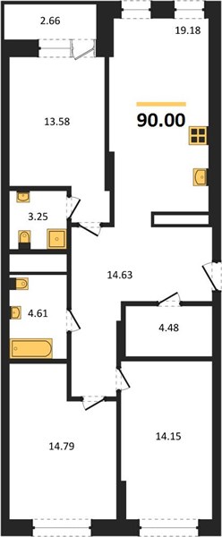 Квартира: 3 к 90,00 кв.м., 6 этаж в комплексе Теплые кварталы, 5 очередь, корп.1, сдача: 3кв. , этажей: 26, адрес Екатеринбург г., Студенческая ул., , Застройщик: Призвание.