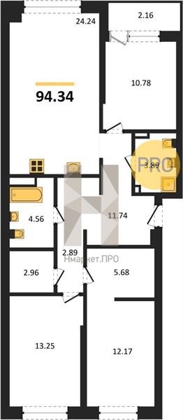 | Общая площадь: | 94.34 м2 |