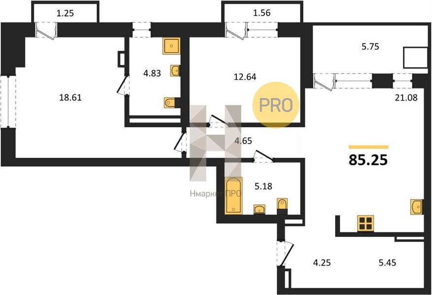 | Общая площадь: | 85.25 м2 |