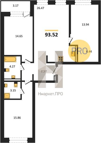 Квартира: 3 к 93,52 кв.м., 3 этаж в комплексе Наука и искусство, 1 очередь, корп.7, сдача: 3кв. , этажей: 8, адрес Екатеринбург г., Студенческая ул., , Застройщик: АтомСтройКомплекс.