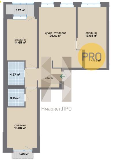 Квартира: 3 к 94,86 кв.м., 6 этаж в комплексе Наука и искусство, 1 очередь, корп.7, сдача: 3кв. , этажей: 8, адрес Екатеринбург г., Студенческая ул., , Застройщик: АтомСтройКомплекс.