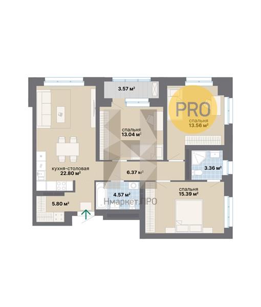 Квартира: 3 к 88,46 кв.м., 9 этаж в комплексе Наука и искусство, 1 очередь, корп.1, сдача: 3кв. , этажей: 24, адрес Екатеринбург г., Студенческая ул., , Застройщик: АтомСтройКомплекс.