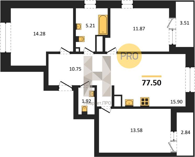 Квартира: 3 к 77,50 кв.м., 3 этаж в комплексе Екатерининский парк, 3 очередь, корп.2.3, сдача: 4кв. , этажей: 7, адрес Екатеринбург г., Свердлова ул., д. 32, Застройщик: TEN девелопмент.