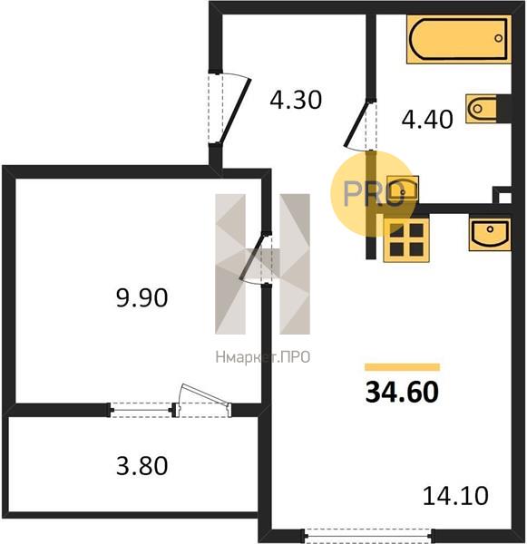 Квартира: 1 к 34,50 кв.м., 18 этаж в комплексе Екатерининский парк, 4 очередь, корп.3.2, сдача: 4кв. , этажей: 31, адрес Екатеринбург г., Свердлова ул., , Застройщик: TEN девелопмент.