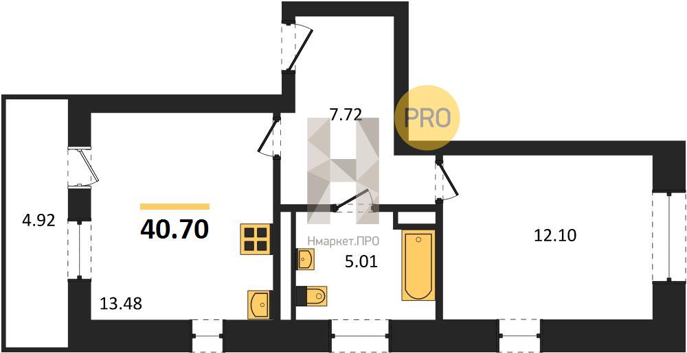 Квартира: 1 к 40,70 кв.м., 3 этаж в комплексе Екатерининский парк, 3 очередь, корп.2.3, сдача: 4кв. , этажей: 7, адрес Екатеринбург г., Свердлова ул., д. 32, Застройщик: TEN девелопмент.