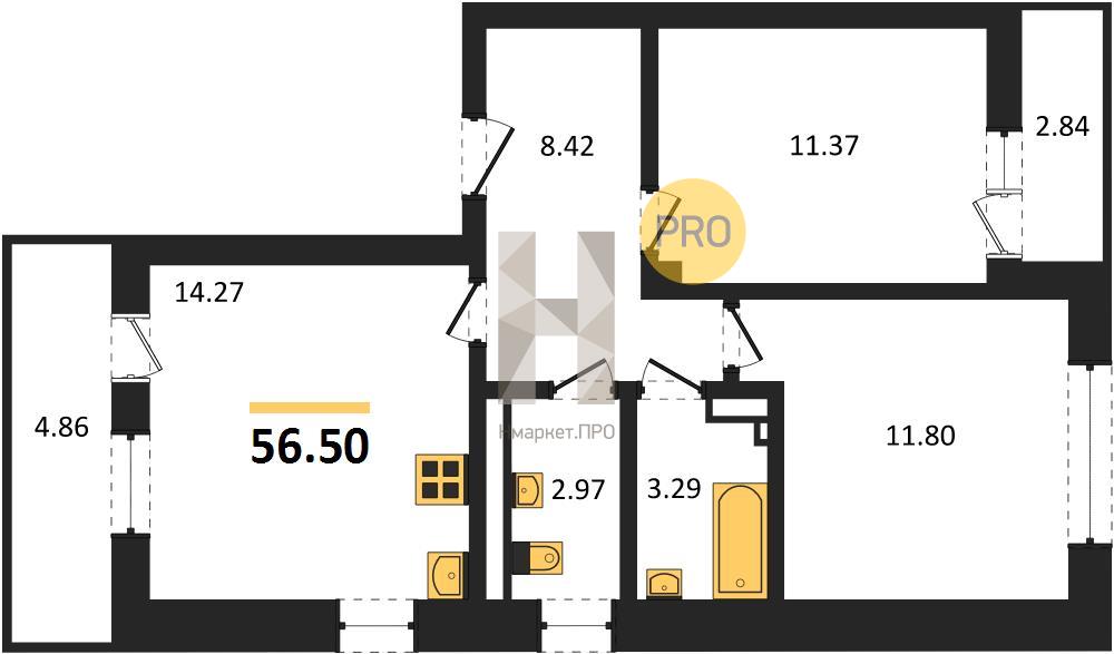 Квартира: 2 к 56,50 кв.м., 6 этаж в комплексе Екатерининский парк, 3 очередь, корп.2.3, сдача: 4кв. , этажей: 7, адрес Екатеринбург г., Свердлова ул., д. 32, Застройщик: TEN девелопмент.
