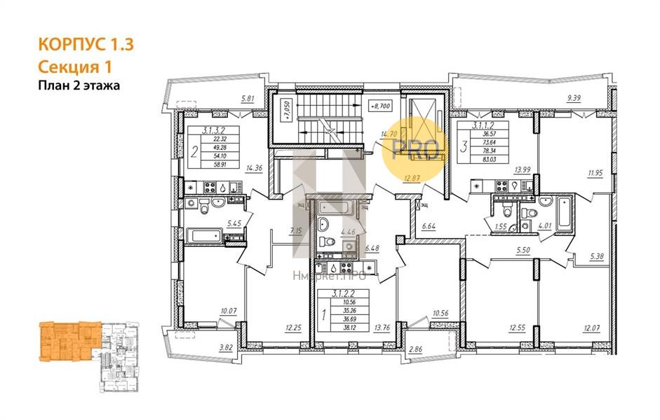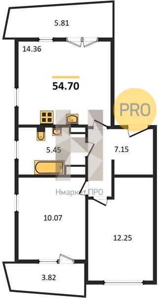 | Общая площадь: | 54.70 м2 |