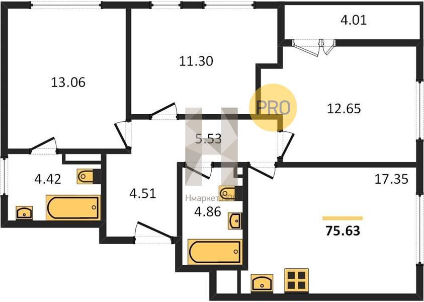| Общая площадь: | 75.00 м2 |