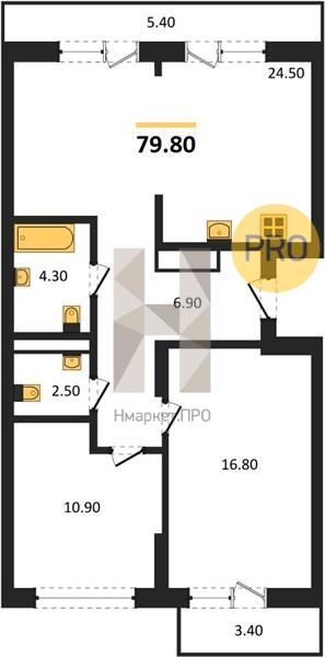 Квартира: 2 к 79,80 кв.м., 7 этаж в комплексе Квартал Депо, 7 очередь, корп.7, сдача: 2кв. , этажей: 16, адрес Екатеринбург г., Таватуйская ул., , Застройщик: Брусника.