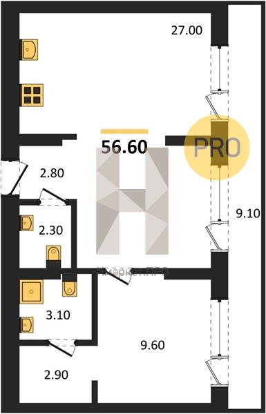Квартира: 1 к 56,60 кв.м., 7 этаж в комплексе Квартал Депо, 7 очередь, корп.7, сдача: 2кв. , этажей: 16, адрес Екатеринбург г., Таватуйская ул., , Застройщик: Брусника.