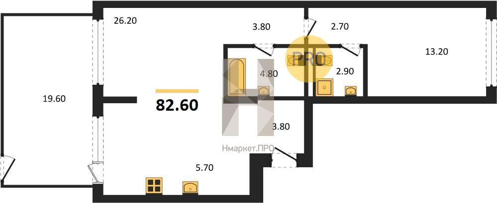 Квартира: 1 к 82,60 кв.м., 2 этаж в комплексе Квартал Депо, 7 очередь, корп.7, сдача: 2кв. , этажей: 16, адрес Екатеринбург г., Таватуйская ул., , Застройщик: Брусника.