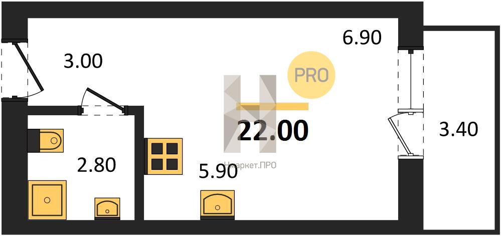 | Общая площадь: | 22.00 м2 |
