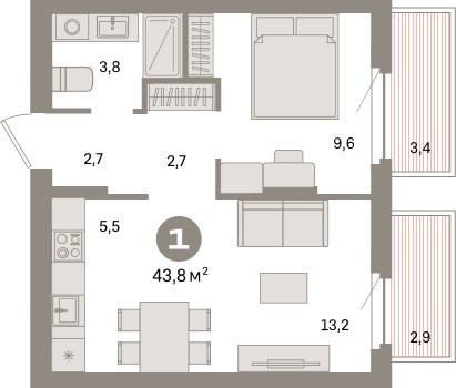 Квартира: 1 к 43,80 кв.м., 7 этаж в комплексе Квартал Депо, 7 очередь, корп.7, сдача: 2кв. , этажей: 16, адрес Екатеринбург г., Таватуйская ул., , Застройщик: Брусника.