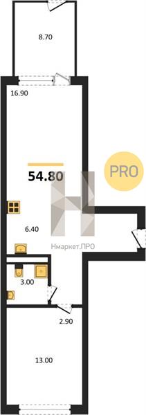 | Общая площадь: | 54.80 м2 |