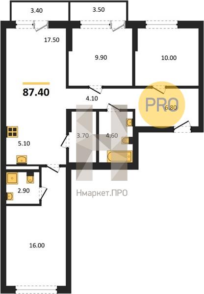 Квартира: 3 к 87,40 кв.м., 4 этаж в комплексе Квартал Депо, 7 очередь, корп.7, сдача: 2кв. , этажей: 16, адрес Екатеринбург г., Таватуйская ул., , Застройщик: Брусника.