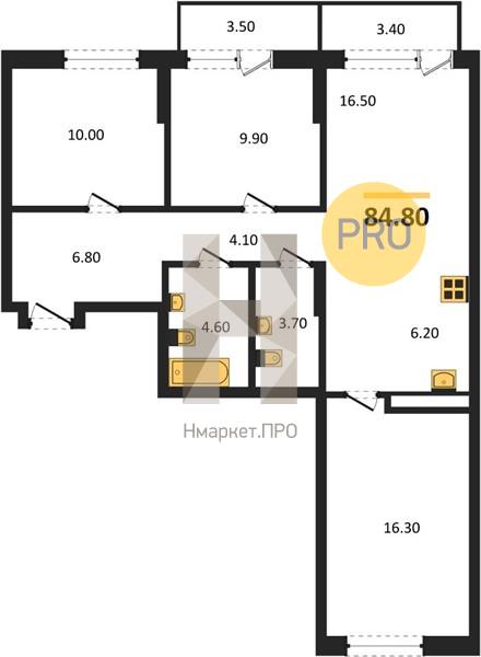 Квартира: 3 к 84,80 кв.м., 6 этаж в комплексе Квартал Депо, 7 очередь, корп.7, сдача: 2кв. , этажей: 16, адрес Екатеринбург г., Таватуйская ул., , Застройщик: Брусника.