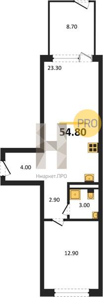 | Общая площадь: | 54.80 м2 |