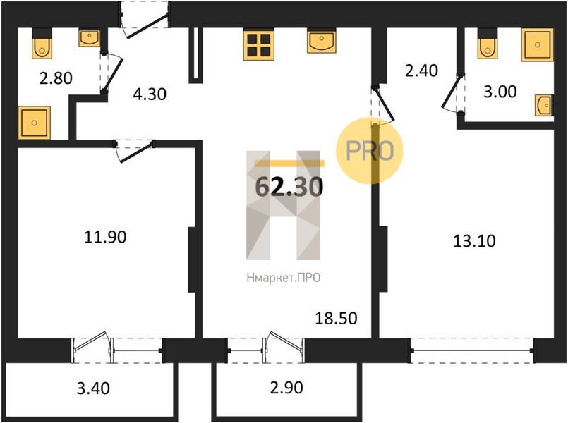 Квартира: 2 к 62,30 кв.м., 5 этаж в комплексе Квартал Депо, 7 очередь, корп.7, сдача: 2кв. , этажей: 16, адрес Екатеринбург г., Таватуйская ул., , Застройщик: Брусника.